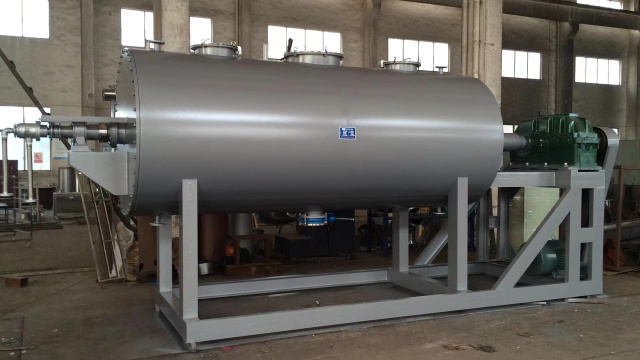 耙式真空干燥機比較適用于干燥熱敏性物料,在高溫下易氧化的物料、或干燥時易板結的物料,以及干燥中排出的蒸汽須回收的物料。干燥完畢后物料為粉末狀,所以對于成品為粉末狀的物料較為適用,干燥完畢后可直接包裝,不用粉碎。