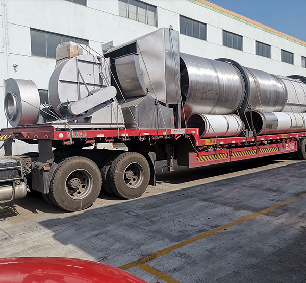 回轉窯滾筒干燥機是一種內加熱傳導型轉動連續干燥設備。旋轉的滾筒通過其下部料槽,粘附著一厚度的料膜,熱量通過管道輸送至滾筒內壁,傳導到滾筒外壁,再傳導給料膜,使料膜中的濕得到蒸發、脫濕、使含濕分的物料得到干燥。
